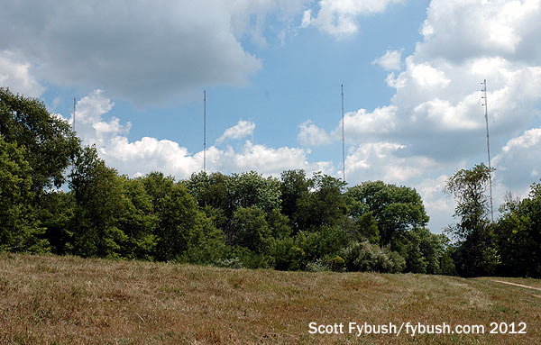 Just to the south of the TV/FM antenna farm, we find most of Peoria’s AMs. Go south on Cole Hollow and east on Zion Oaks Road and you’ll bend around the four-tower site of WIRL, which was Peoria’s monster top-40 AM back in the days when there were monster top-40 AMs.