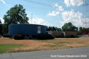 Turning westward on Cook Road, we find the 1960s-era studio building of Springfield’s dominant local TV station, WICS (Channel 20). As always with central Illinois TV, Doug Quick’s website has the most comprehensive history imaginable; in a nutshell, though, WICS was part of the early UHF boom of 1953, signing on as a quasi-sister station to WCVS (1450) and sharing that station’s studio location in a downtown hotel and its transmitter site south of town on South Fourth Street.