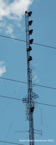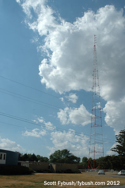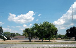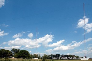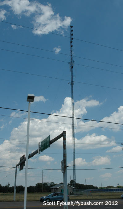 Returning eastward again to Dirksen Parkway and East Cook Road, we find the tall tower that’s home to two of Saga’s full-power signals here, news-talk WTAX (1240) and top-40 WDBR (103.7). In 2012, this was also home to two Saga translators, the 107.5 that relays WTAX and a 101.1, W266BZ, that’s been shuffled around to various formats over the years. (It’s now carrying variety hits “Abe FM,” formerly on a full-power 93.9 to the north in Sherman that’s now carrying classic hits “Cool” WQQB. WQQB used to be on 101.9, another full-power Springfield signal that’s now country “Wolf” WLFZ. Saga’s final full-power voice here is classic rock WYMG on 100.5.)