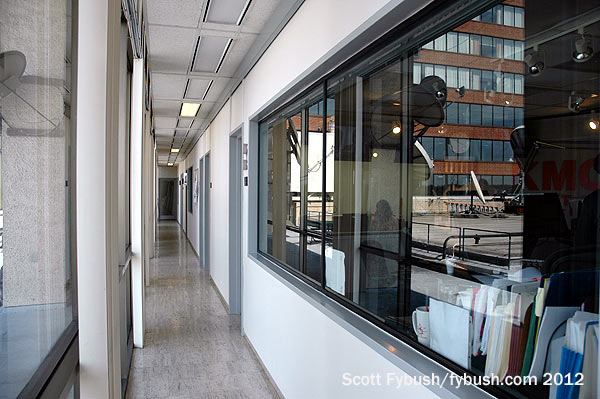 That was Studio B (below at right) on the southeast corner of the complex, with a producer booth looking into it, surrounded by smaller news booths.