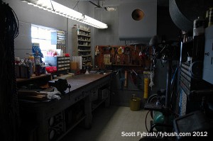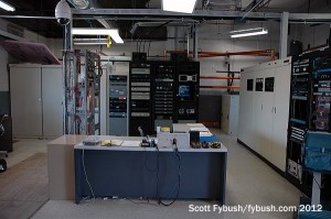 As with many sites of this era, most of the activity took place on the second floor, where the big transmitter room sat at one end of the building, with engineering offices (now being repurposed as an emergency studio/newsroom) and a well-appointed engineering shop at the other end. Downstairs was where the power transformers sat, and it’s still where the HVAC and generator are to be found.