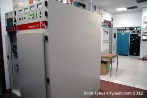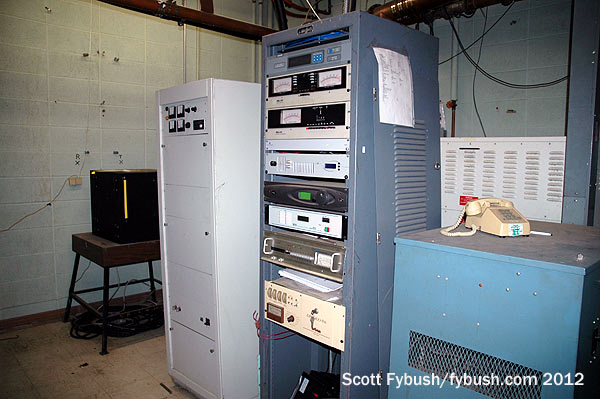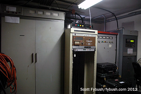 We got a somewhat better look this time around at WQLN’s transmitters: that Axcera in front was carrying WQLN-TV on RF 50, while the Harris in the back (backed up by the lovely blue RCA next to it) was WQLN-FM on 91.3. The room behind this one housed the leased space for Gannon’s WERG-FM (90.5), which was just getting settled in up here the last time we visited. (That’s a Henry Radio transmitter, by the way, and you don’t see those all that often.)