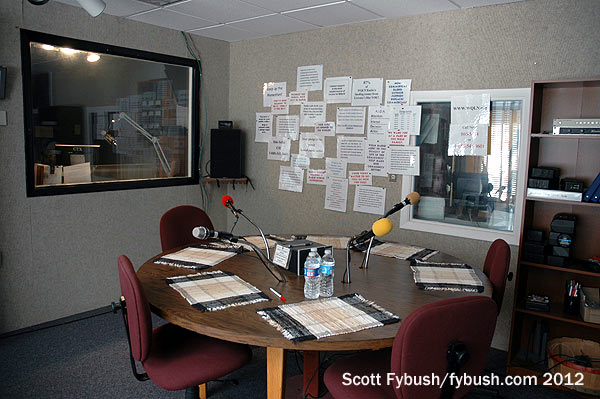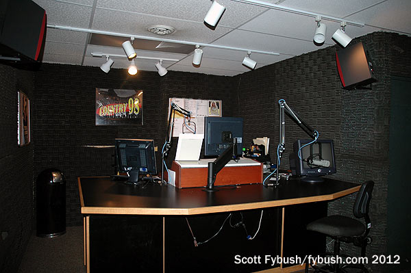 Another small wedge of space became the WRIE studio (it was doing ESPN Radio when we visited in 2012, but switched to CBS Sports Radio in 2013), while “i104.3” is in what’s otherwise a production room next to WXTA. (WXTA, for its part, took the “Nash” branding in early 2014.)