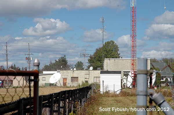 We’re on Robison Road in Summit Township, which runs parallel to and just south of I-90. If you’ve ever driven this stretch of 90, you’ve probably seen the forest of towers that lines the ridge south of the highway. From east to west, attentive drivers on 90 can see the FM sites of WRTS (103.7) and WXKC (99.9), the tall tower of WICU-TV (Channel 12, now shared by sister station WSEE), and the tall towers along Peach Street that are home to WJET-TV (Channel 24)/WFXP (Channel 66), public broadcaster WQLN (Channel 54)/WQLN-FM (91.3), and the old WSEE analog tower.