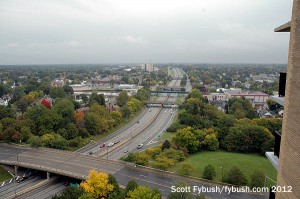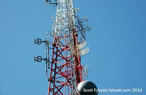 But then Clear Channel made a big change over in the Syracuse market: having also acquired that 106.9 signal in Auburn, Clear downgraded it from B to B1 and shifted it much closer to downtown Syracuse as WSYR-FM, a relay of news-talk WSYR (570). That opened up expansion potential for several other upstate stations: in Binghamton, it allowed another class A drop-in at 106.7 to move into the heart of the market. And in Rochester, it allowed WKGS to move south from Seneca Towers, which means we had to get up and see the old site there before the big move.