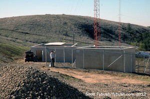 In this NIMBY-ridden era, that wasn’t an easy task, and Crawford tried and rejected several possibilities before settling on a site called Oak Flat, up in the mountains that separate eastern Orange County from Corona. This was actually a recycled site: it had been the original home of KPLS (830 Orange) before that station moved to a site lower down on the Corona side, where it’s now KLAA. (We saw it, at least from the outside, on an earlier trip.)