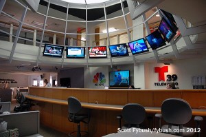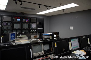 Next door to the main KXAS studio is a smaller studio that was once the main WBAP radio studio complex. Today it’s used for the other TV station that operates from here. KXTX (Channel 39) is the Telemundo station in town, now an NBC-owned sister station to KXAS. This control room is rather older than KXAS’; indeed, KXTX’s news was still in SD until both stations moved to their new home in 2013.