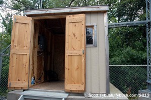 This is a fairly simple site, too: a small Elenos transmitter takes pride of place in the center of the single rack in the shed next to the tower adjacent to a Wheeler athletic field.