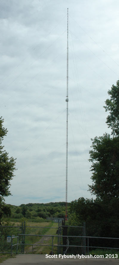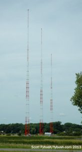 In fact, this is a more modern configuration: when the site was built in 1940, it was a one-site operation, running two separate directional patterns from what’s now the night site across the busy highway from the transmitter building. The Franklin tower for day use (and to hold the KSTP-FM antenna before the main FM site was moved to Shorewood in the early 1970s) didn’t come along until 1965. (I’m told the current Franklin is actually a 1981 replacement for that tower.)