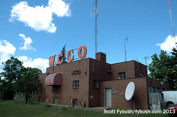Interestingly, WCCO-TV has never shared studio space with its radio sister. By the time channel 4’s owners, the “Twin Cities Newspapers” consortium of the Minneapolis Star and Tribune and the St. Paul Pioneer Press and Dispatch, bought WCCO (830) in 1952, WCCO’s then-owner CBS had already made the radio station at home in the same building at 625 Second Avenue South where it still resides today. We saw those studios in 2005 and they haven’t changed much; we also saw the WCCO(AM) transmitter site back then, and it’s changed just a little.