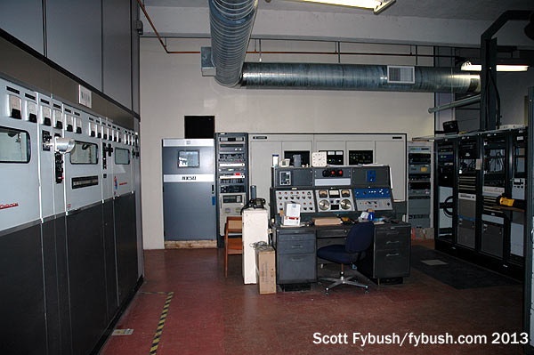 The big change between then and now is that in addition to the (now-decommissioned) Continental aux transmitter and the Harris DX50 that was the main in 2005, there’s now a compact Nautel 50 kW transmitter just to the left of the DX50, neatly installed in an extension of the wall that used to end on the left side of the Harris.