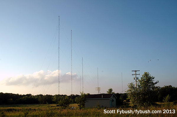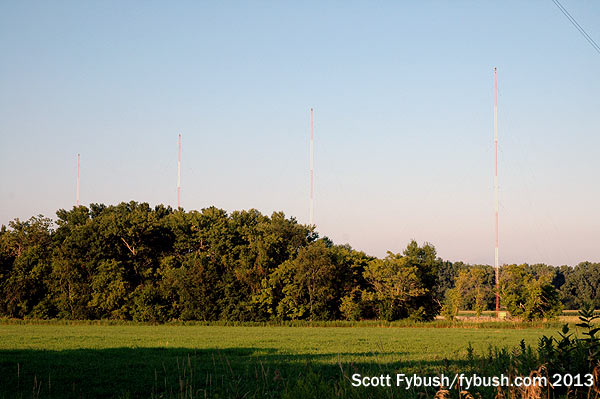 Our next stop is a bit of a mystery: KOLM (1520 Rochester) has been around since 1959, taking its calls from OLMsted County, and for most of its existence this signal was a daytimer, powering down its 10,000 watts to protect Oklahoma City and Buffalo on the same channel. In 2000, very late in the game for AM, KOLM added 800-watt night service, and it did so with a brand-new six-tower site separate from its longtime non-directional daytime home. (Just to make things even more complicated, that shorter second tower at the day site comes into play during critical hours, when KOLM stays at 10 kW but switches in a directional pattern to protect its co-channel neighbors.
