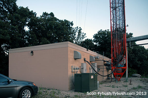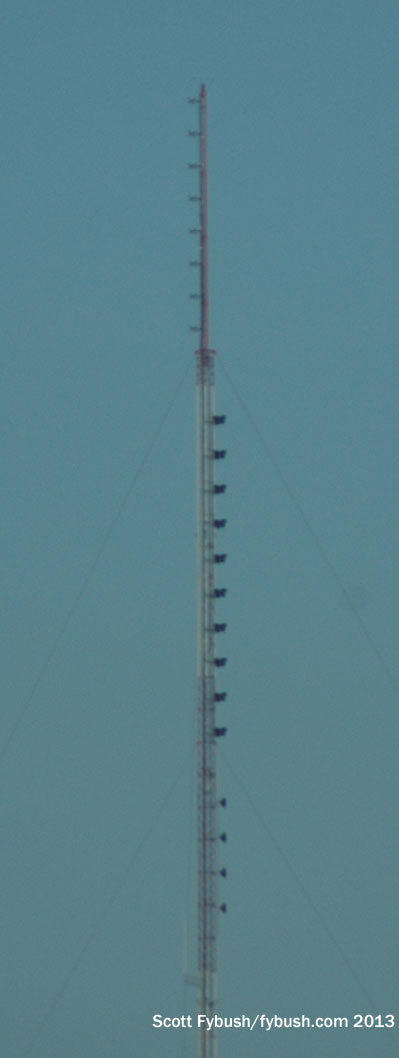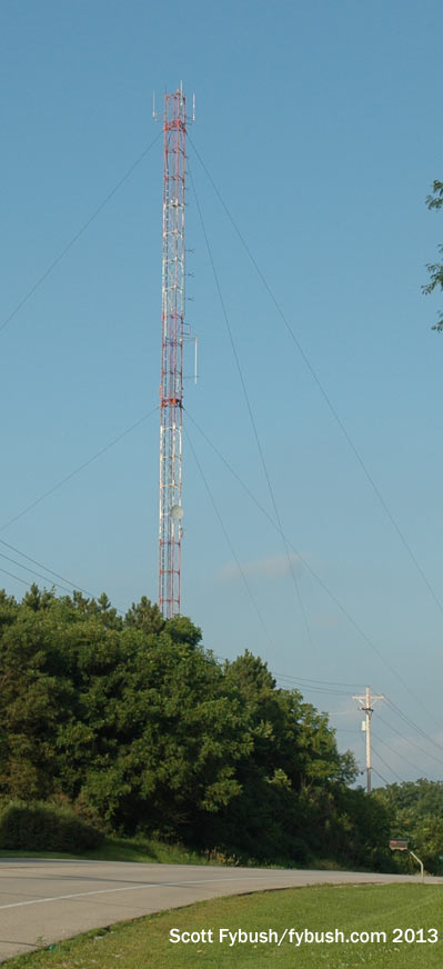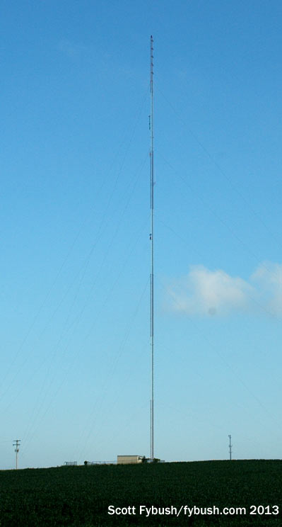As we saw some years back when we visited Mason City, the CBS affiliate there, KIMT (Channel 3) is the dominant local news source for the Iowa side of the market; KTTC/KXLT thus ends up competing with ABC affiliate KAAL (Channel 6), based over in Austin to the southwest, for the Minnesota audience, even though all of these stations all appear on cable and satellite across the market. To make it all work, the stations all have tall towers located in the rolling hills along the Minnesota-Iowa border, 30 miles or so due south of Rochester.
