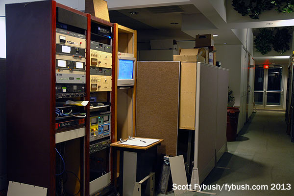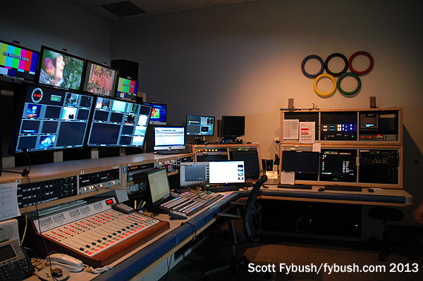 From the lobby at the front corner of the building, we move back through rack rooms into the control room that looks into the sizable studio where KTTC and KXLT originate their newscasts, and then back beyond that into the stations’ newsroom, which in turn looks through big glass walls into a master-control suite that was being renovated when we stopped by.