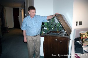Alas, even the last of the beautiful music holdouts are fading fast. Down in Jacksonville, WKTZ (90.9) ended its run with the format this week – and as we write this, a year and a few months after taking these pictures, KNXR’s days on 97.5 are winding down, too. Just before our visit, Tom had launched a listener support drive to raise some of the money that wasn’t coming in from advertisers the way it used to do. A legal battle with MPR over the tower-site partnership that started not long after our visit drained some of Tom’s resources, and this autumn he announced the sale of the 97.5 facility and (optionally) the share in the tower to Hometown Broadcasting over in Albert Lea. The sale doesn’t include this building, and while Jones hasn’t said so, our hope is that the KNXR format and calls might live on a while longer from here on what’s now the KRPR 89.9 facility.