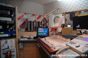 Those two stations still occupy pride of (windowless) place at the core of this line of studios: KROC(AM) is still live and local, at least in mornings, with a full-service morning show that’s winding down as we show up, and KROC-FM is the big top-40 voice for the region, with 100 kW from the KTTC tower way to the south and a translator in town on 106.3 for better downtown reception.
