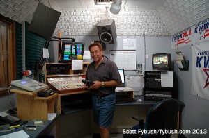 After many years in the Holiday Inn downtown, Tom’s United Audio group moved to a purpose-built facility in the 1990s. The building on Greenview Drive, right off the 52 bypass in an upscale area of shopping centers and office parks on the southwest side of town, is a showplace, designed not only for radio but for the more demanding acoustic needs of recording, and even though it’s undergoing some renovations as Tom downsizes the KNXR/KRPR operation and leases out some of the office space, it’s still plenty impressive – and impressively quiet, too.