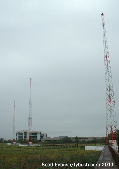 This site dates to 1943, when the Yankee Network relocated its Boston flagship station WNAC (1260) from a previous site not too far away in the Squantum section of Quincy and sent sister station WAAB (1440) off to Worcester. By going directional with three towers, WNAC was able to go to 5000 watts fulltime, though its spot high on the dial still made it a lesser signal than its competitors, especially 50,000-watt WBZ.