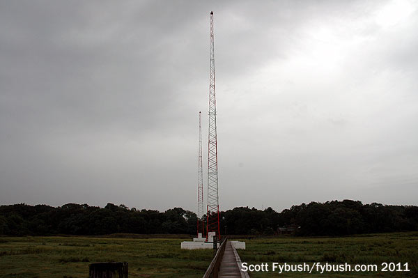 It’s here, on a little spit of land extending eastward from 107 into the marsh, that we find another venerable transmitter site. This was home to WHDH on 830 and later 850 from 1932 until the present 850 transmitter site went up out in Needham after World War II.