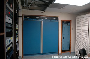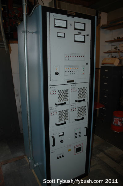 And that’s where we came in: our 2011 visit found a building that had undergone plenty of modification over the years. WMKI’s pair of Nautel transmitters (Disney is a big Nautel user) and phasor now occupy the front room of the building, right inside a little vestibule that must have been the reception area when WEZE had its studios out here, before they moved up the road to the Marina Bay office complex in Quincy where Salem now operates. (Radio Disney maintains office space and what passes for a local WMKI studio up in Allston.)