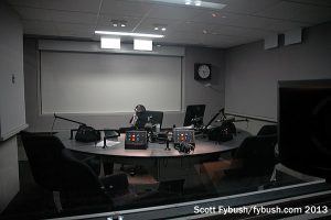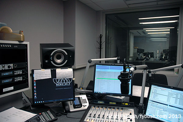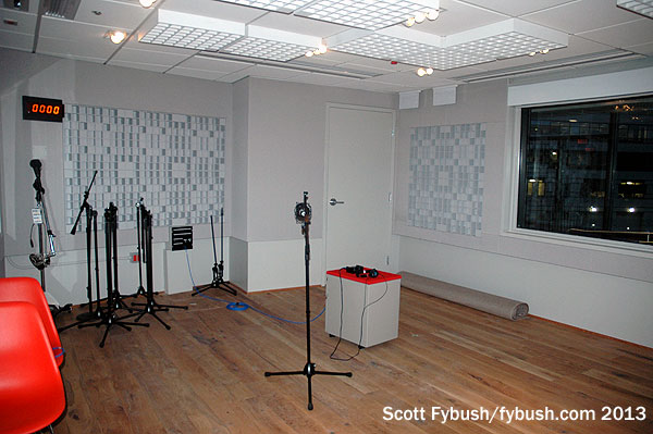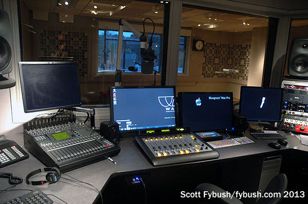 WAMU has one of the more distinctive HD2s out there: “Bluegrass Country” continues a long tradition of bluegrass music on WAMU, and it’s simulcast in the Virginia suburbs on a powerful translator at 105.5. The move to 4401 Connecticut gave the bluegrass folks a floor of their own, and an impressive one at that: there’s a performance studio and control room as well as a suite of air studios for the HD2’s live and voicetracked programming.