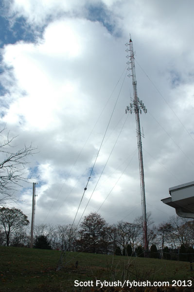 The original 107.5 transmitter site was at what’s still the studio location, up on the side of a hill on Mill Street south of Boyertown. Since the mid-1970s, 107.5 has operated from a much higher location six miles or so to the north near Bechtelsville, and we got to see both sites during our tour.