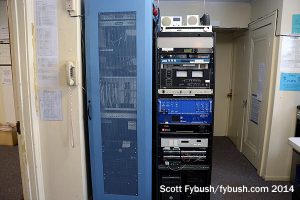 WGVA’s transmitter, a little Energy-Onix, still sits here, next to racks that hold automation, STLs to the other FLRG stations, and also the transmitter for translator W214BR (90.7), which was once the CSN outlet and now relays public radio WRVO (89.9) from Oswego.