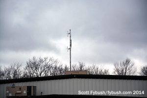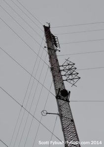 And we finish off back at Boot Jack Hill, at an industrial building on Servidea Drive just up from the WDDH studios, where we see the antenna for one of the many signals in the “Rev FM” religious network out of State College. This one is WRVI (91.1 Ridgway), one of two Rev signals that can clearly be heard around here, along with WRQV (88.1 Ridgway), which now transmits from a site south of here closer to I-80.