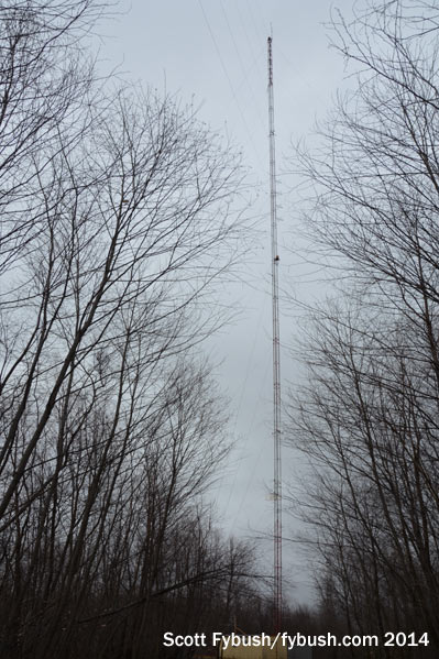 WKBI-FM’s tower is just up Boot Jack Hill from the studio, and we take a drive back into the woods to see the stick, which is also home to competitor WJNG (100.5 Johnsonburg, part of the “Mega Rock” simulcast) and to W233BS (94.5), the translator that puts WKBI(AM) on the FM dial for Ridgway and vicinity.