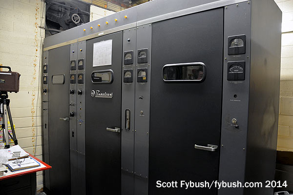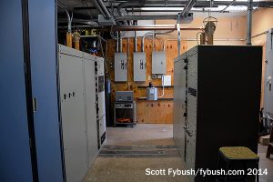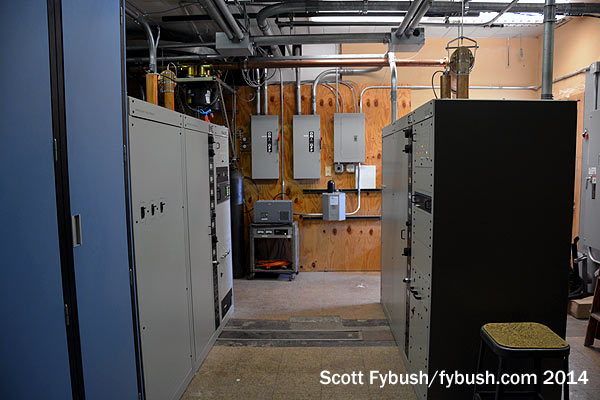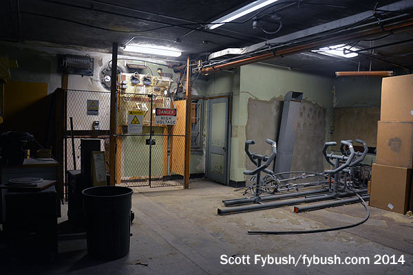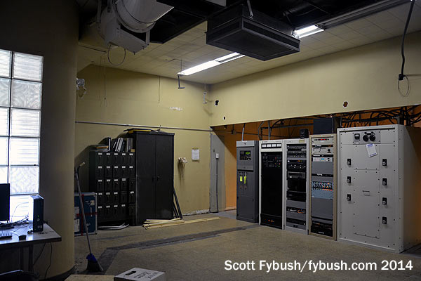 I suspect the middle building in this grouping, reached through a pair of really neat round-window Deco doors, was probably the original 1930 structure, especially because it includes the basement that James O’Neal mentioned in his Radio World piece. These days, the middle building is used mostly for storage, though it also houses the feeds out to the AM towers.