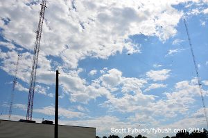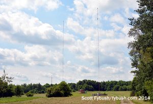 For WHK, this is a three-tower array, non-directional by day and using all three towers at night. WMMS has its antennas on tower 2; at 412 feet tall, and a little over 600 feet above average terrain, it’s one of the shorter FM sites in town but still performs nicely.