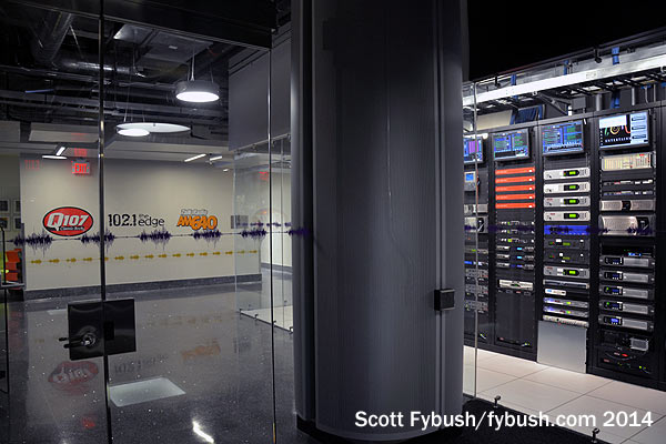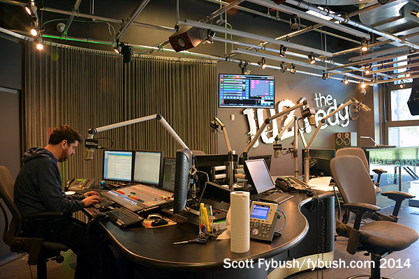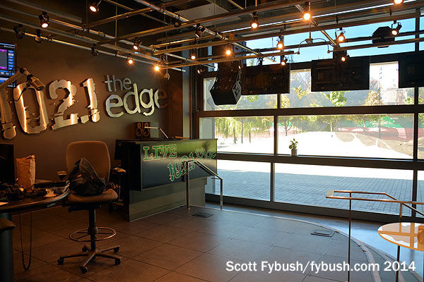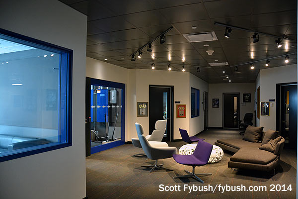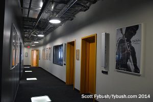 Most of the radio offices are directly upstairs, where there’s also a suite of production rooms that overlook the atrium below.
