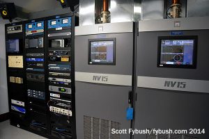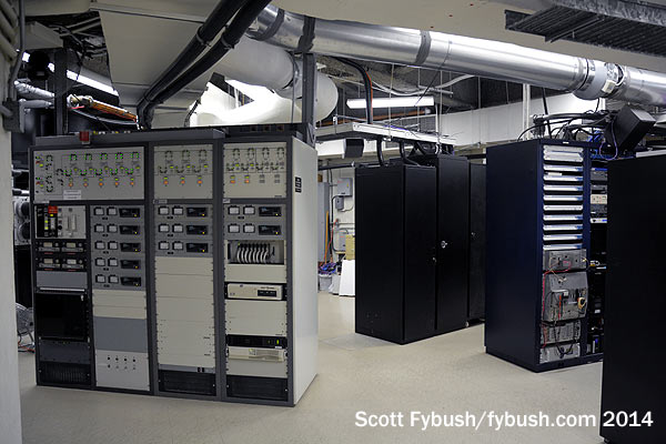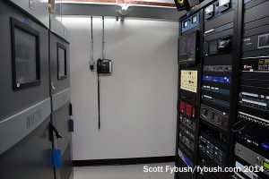 Over the years that followed, more FM stations moved from downtown rooftops and suburban locations, while a few lucky broadcasters were able to start brand-new signals here. Both CFNY (102.1), which moved from Brampton, and CILQ (107.1), which had been elsewhere downtown, are now co-owned by Corus and occupy adjacent rooms just down the curving hallway from the master FM room. Both rooms have undergone recent renovations, and now boast pairs of Nautel transmitters. There are more rooms along this hallway, too, that we don’t get to see: Newcap’s CHBM (97.3) was a late arrival up here, signing on in the 1980s as CJEZ, and CJRT (91.1) has its own room as well. (And despite what you may read elsewhere – looking at you, Wikipedia! – classical CFMZ 96.3 transmits from over at First Canadian Place, not here at CN.)