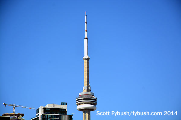 If there’s any flaw at all in this massive communications monolith, it’s this: when it was built, its designers didn’t imagine Toronto would ever need more than a half-dozen TV stations or 10 big FMs. And so the stations that were privileged enough to be here early on get to enjoy the benefits of high-power transmission from 1800 feet above the heart of downtown, while later arrivals ended up at about half that height on the nearby First Canadian Place.