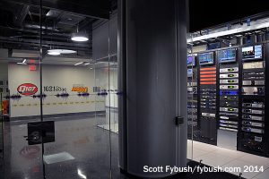 We didn’t see too much of the rest of this building, but we did get to cross over to the other side of the second floor, where there’s a mammoth rack room that ties together all of the complex networking in this huge facility, as well as a big master control facility for all the cable TV networks that Corus originates here. It’s one impressive plant!