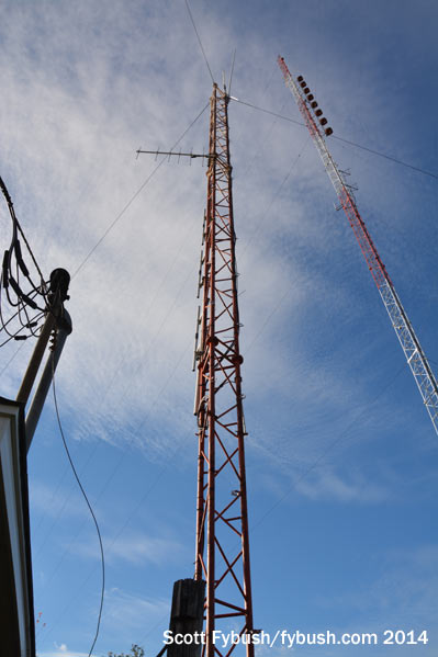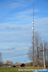 After the studio tour (and a peek at the really cool and quite ancient elevator machinery up in the penthouse above the NCPR studios, which is also where the STLs hang out), it’s off to see some towers, starting off southeast of town up on County Road 27 at the tower of NCPR’s flagship stations, WSLU and WREM.