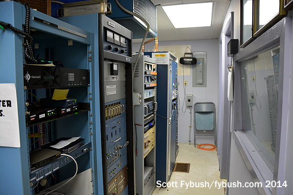 WPDM’s Nautel transmitter is now augmented by an FM translator at 100.1, housed in the rack between the AM rig and WSNN’s Harris transmitter down at the end of transmitter row. In the fall of 2004, 1470/100.1 was doing CBS Sports Radio, but has since flipped to country; WSNN, meanwhile, is “B99.3,” running 80s hits.