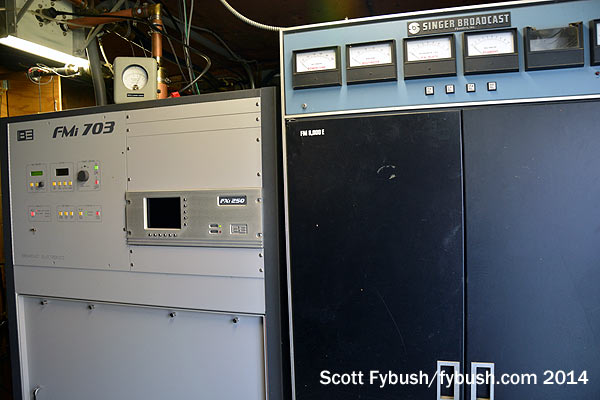 WSLU is in the front room of the little block building by the tower base, with a newer BE transmitter and the old Singer-branded CCA that it replaced. WREM, the later addition, is in a small room out back, using another CCA.