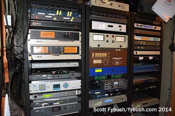 That’s where we find the WICY(AM) transmitters, an older Gates and more recent Harris, right across from the racks that are full of STLs and processing for the FM side of the operation.