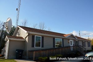Massena sits right on the St. Lawrence River, right where the river enters Canada and the US-Canada border becomes a straight line along land. Stephens Media Group, which we visited in Watertown in an installment a few weeks ago, has signals up here, too. There’s nobody around on a Sunday morning at WMSA (1340 Massena) and its sister stations WVLF (96.1 Norwood) and WRCD (101.5 Canton), but we stop along Route 420 south of downtown to grab some quick shots of the studio and AM transmitter site anyway.