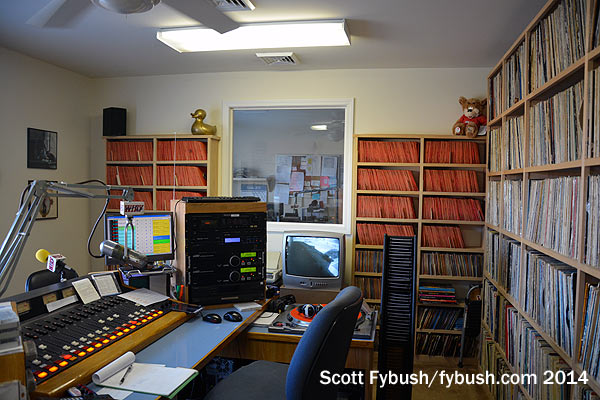 Down at the end of the hall is “Wild Country” WVNV (96.5), which serves both US and Canadian audiences from a studio back by the transmitter shed at the rear of the building.