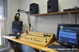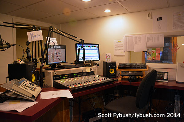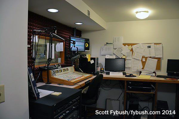 WYSX’s Dave Merz is nice enough to stop by on a Sunday to give us the nickel tour of the second-floor studio space, where three long, narrow rooms serve as studios for each of the three stations and double as office space for the small staff that keeps them all running for listeners on both sides of the border.