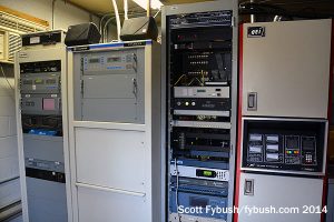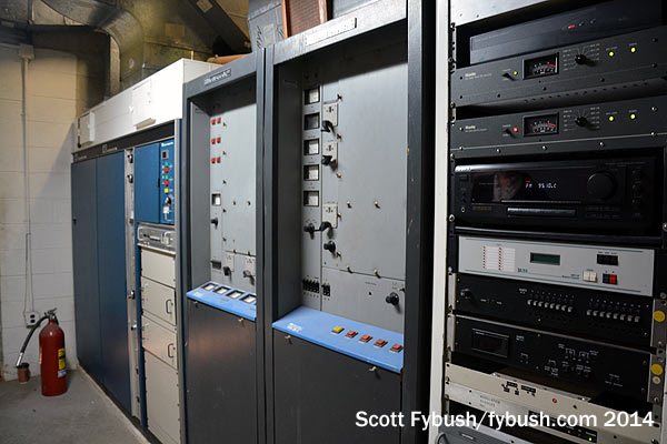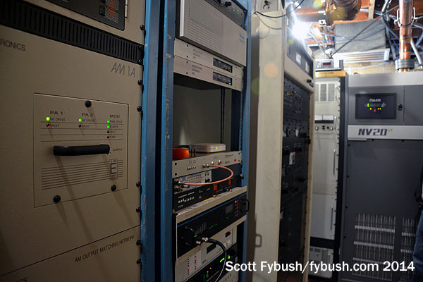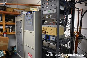 That’s a long-serving BE transmitter at left, and an even older “Sintronics” (aka Singer, aka CCA) aux next to it. Family Stations also had a translator on 90.5 at this site when it owned WKDN-FM (106.9 Camden), but that signal was silent when we visited.