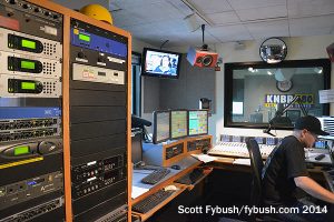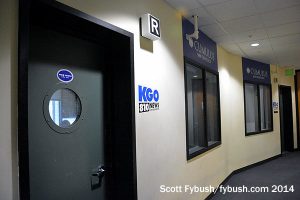 KSFO’s mostly syndicated lineup came from a small control room/studio pair just down the hall from the rack room, on the way down to the former sales bullpen that was reworked to become a new KGO newsroom with space for the staff that was added when Cumulus transformed the station from mostly talk (when it used to be a perennial #1 signal in town) to a hybrid of news and talk.
