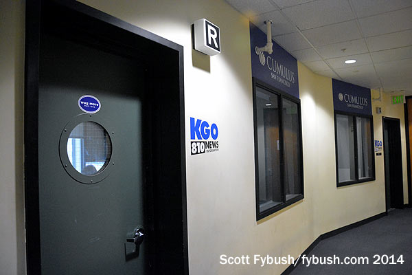 For many decades, KGO was an ABC owned-and-operated flagship, operating in tandem with KGO-TV (Channel 7) from studios at the old NBC building at 420 Taylor, then at 277 Golden Gate Avenue and, for many years, at 900 Front Street. But after Cumulus bought KGO and KSFO as part of its purchase of Citadel (which had in turn bought them from ABC), it was time to move out – and so not long after we visited them at 900 Front Street in 2010, KGO and KSFO packed up and moved a few blocks south of Market Street into the existing Cumulus space that it had acquired with an earlier purchase of Susquehanna.