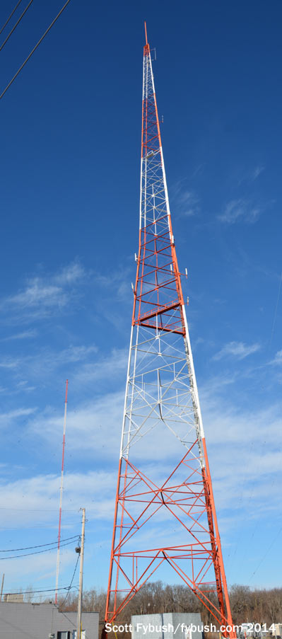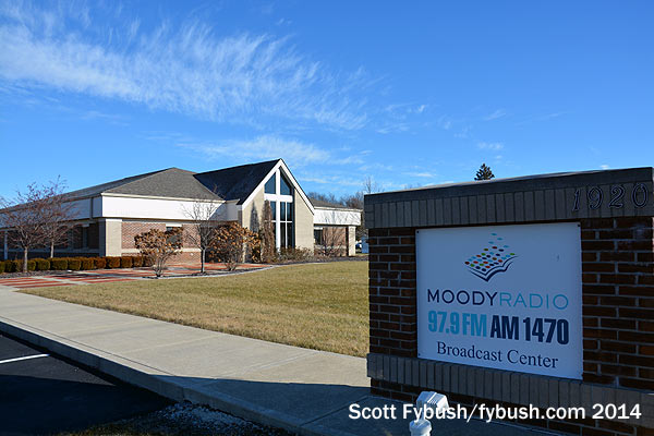 Under Moody, which took over in 1998, that older building was turned into storage, with a new building rising just to the east. When we stopped by in December 2014, that new building had just recently been joined by a new guyed tower to replace the old self-supporter that had stood at this site for decades, and so of course we had to come see it – and get a tour of the new studios while we were at it.