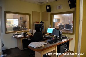 This is a very nice modern studio facility indeed: walk in and you can see the main air studio. complete with SAS Rubicon console, through a window from the lobby. The air studio sits at one corner of a studio core that also includes a production room, a news booth and a studio that can be used for the AM station, though the AM had recently flipped to a simulcast of Moody’s Spanish-language broadcasts from WMBI (1110) up in Chicago.