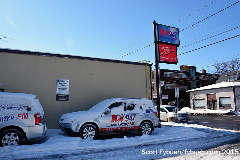 The next day in Hamilton is at least a bit sunnier, if no warmer or less slushy, and so we head on up the hill to the upper part of the city for another station visit. Hamilton is unusual, geographically; the city is split in half by the Niagara Escarpment, with downtown to the north below the ridge and the more suburban “Hamilton Mountain” area to the south atop the escarpment. There are Pittsburgh-esque steep viaducts that carry some of the major north-south arteries from downtown up to the Mountain, where the street names continue as “Upper Whatever Street.” And so here we are at 589 Upper Wellington Street, home of Doug Kirk’s CHKX (94.7).