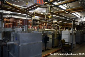WINZ-FM built its transmitter room right at the center of the main first-floor hallway, directly underneath the upstairs room where the original Shively combiner system went in. In its original configuration, this room had carpeted floors and Continental transmitters built into a wall; later renovations took down the wall and put in a Harris/Gates Air transmitter. Other tenants who landed on the first floor included what’s now Univision’s WAMR (107.5), CBS Radio’s WPOW (96.5) and Cox’s WEDR (99.1), the lone station here that doesn’t use the master antenna because it has its own directional antenna.