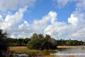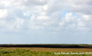 From here, we turn not eastward into Miami but westward into the Everglades, where two very remote AM sites await us. About five miles west of Krome, we snap some shots out the side of the car of the eight-tower array of Salem’s WHIM (1080 Coral Gables, known for many years as WVCG) and a much newer signal, business-talk WZAB (880 Sweetwater), which signed on from here just in 2010.